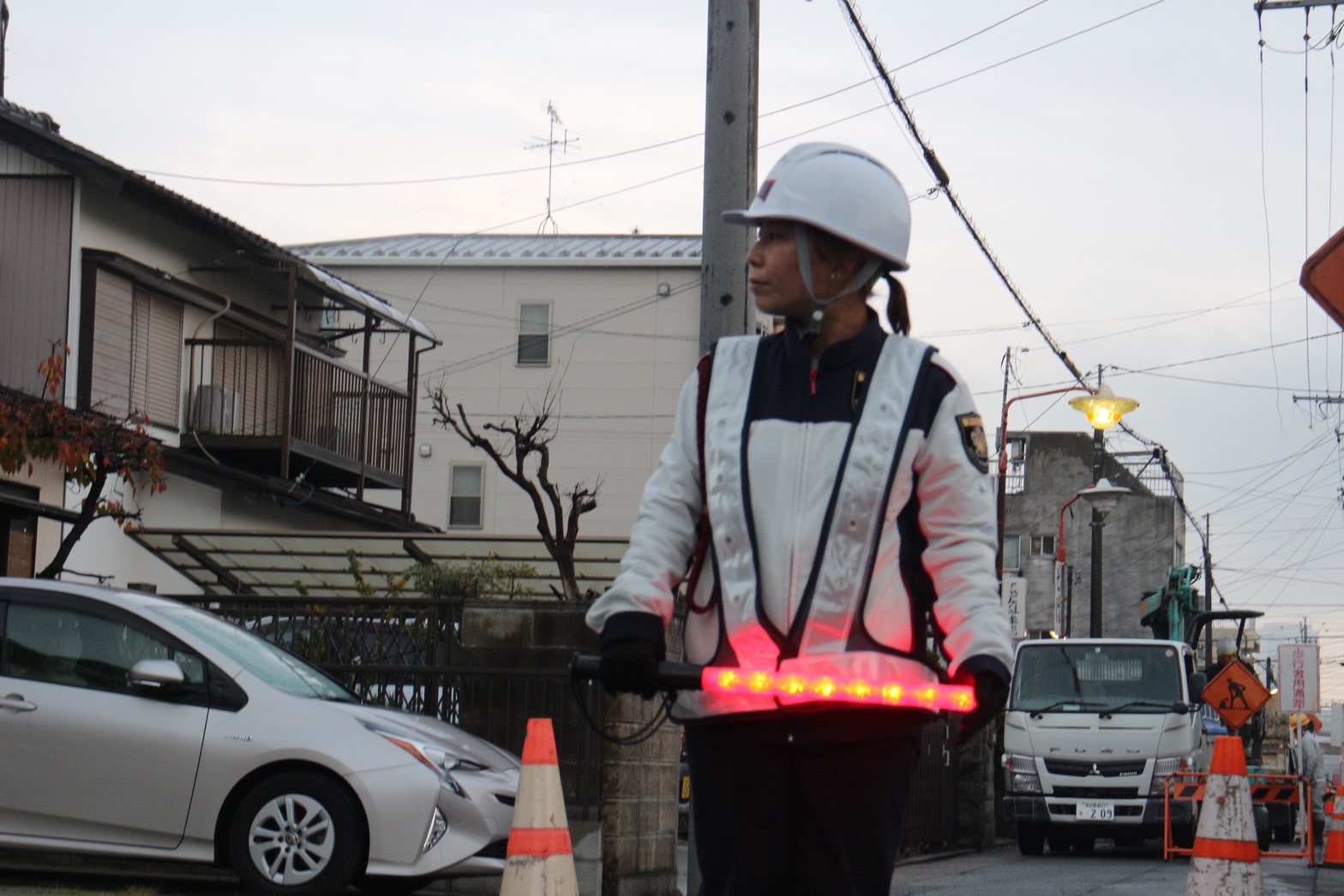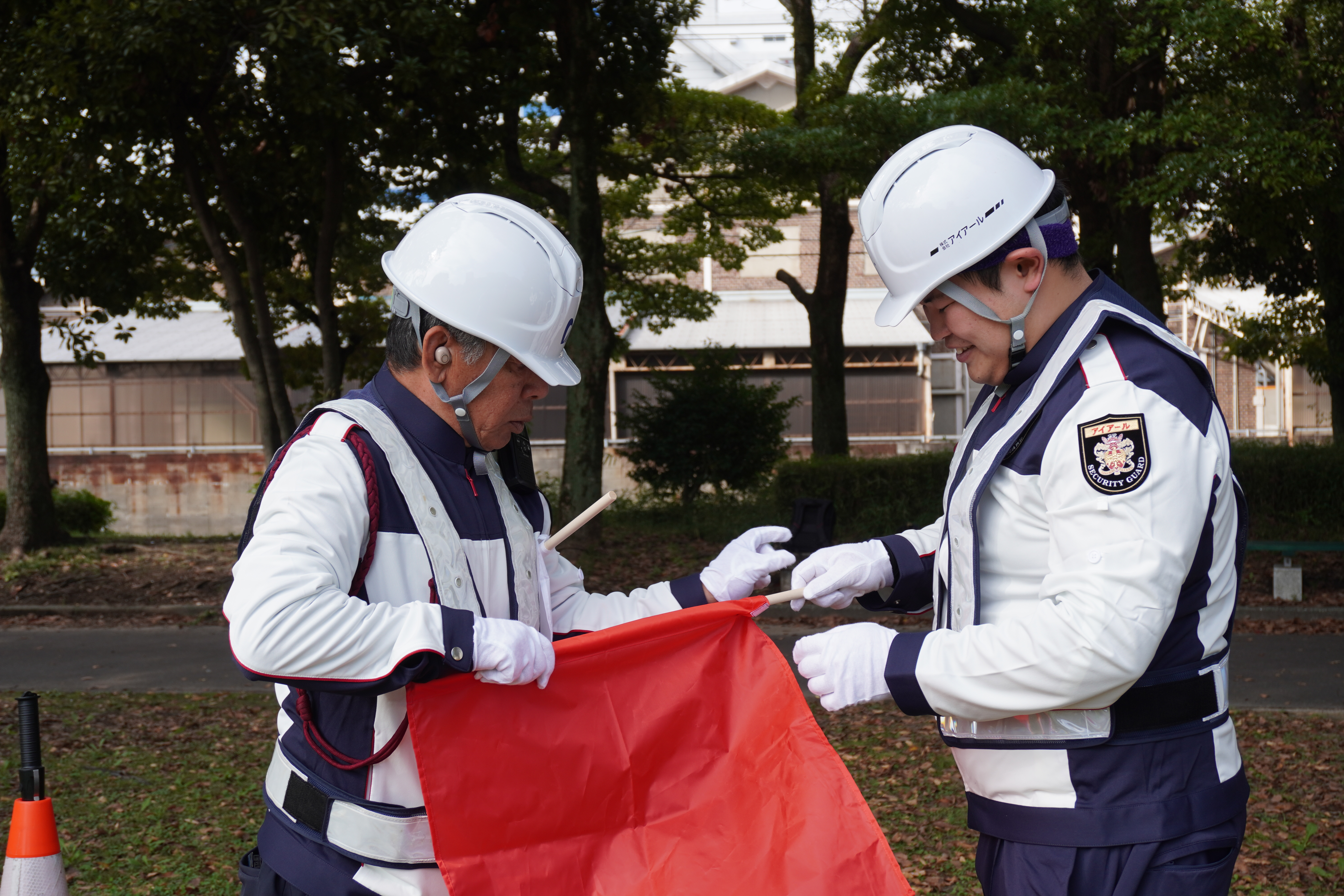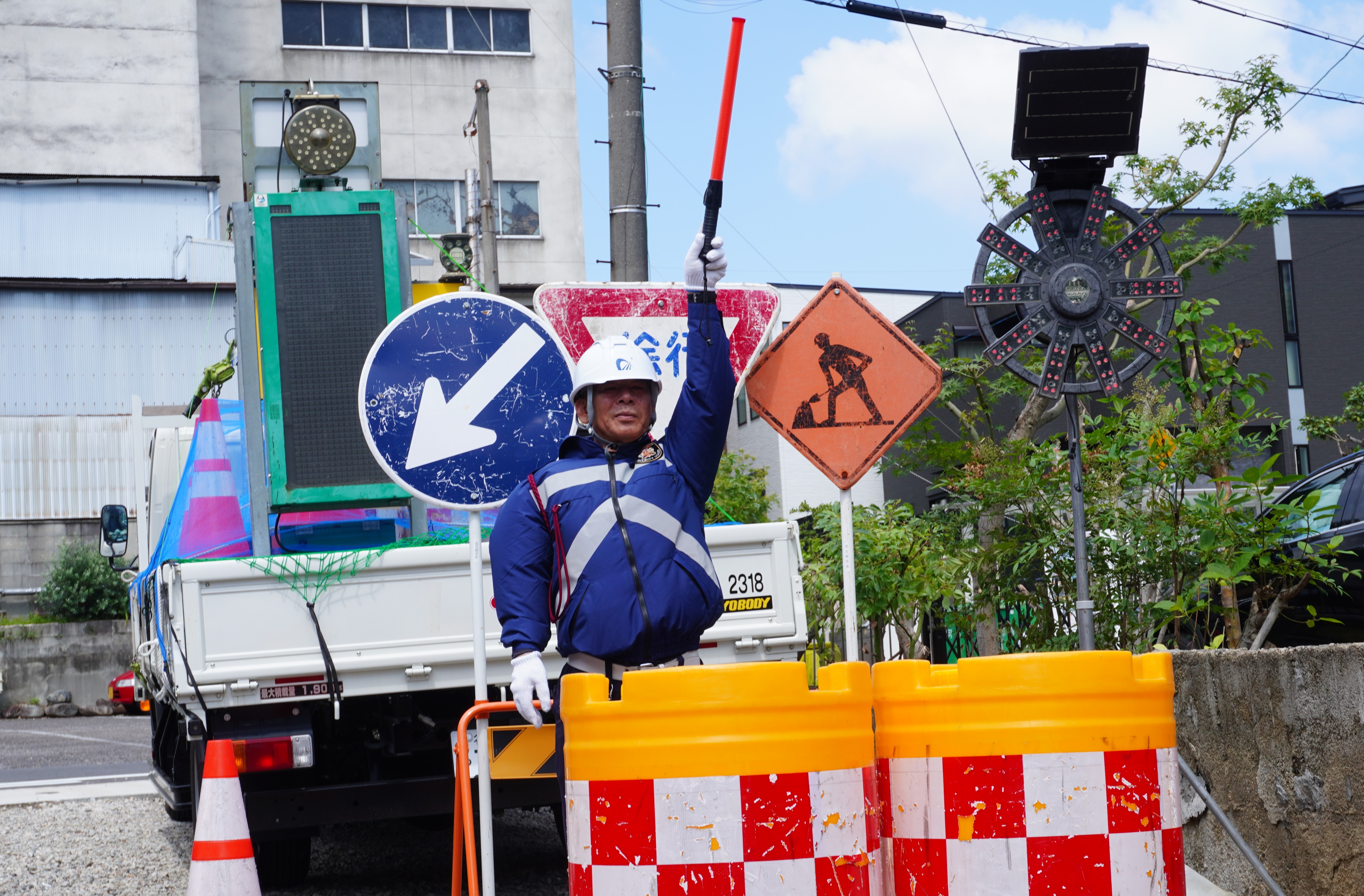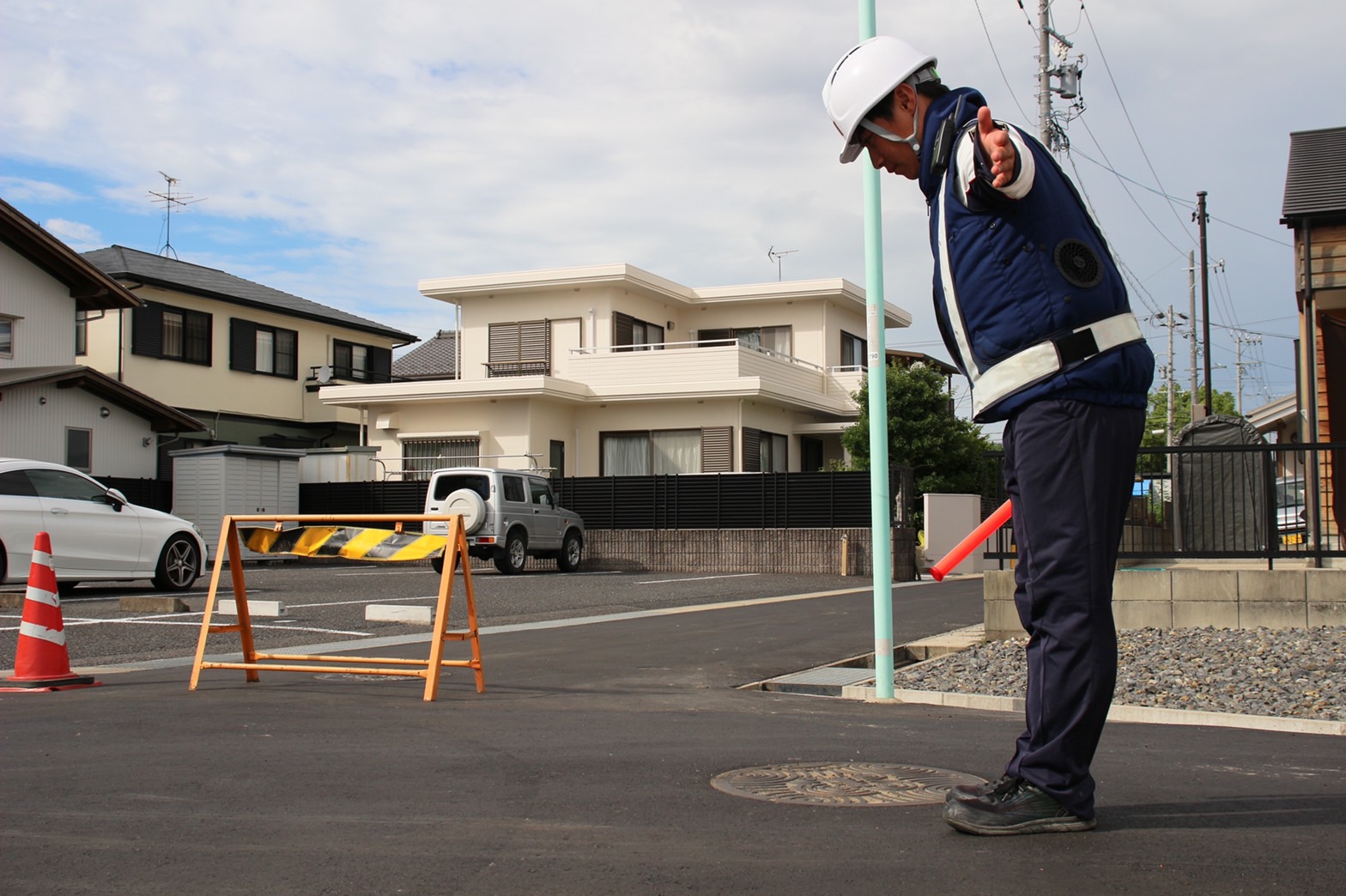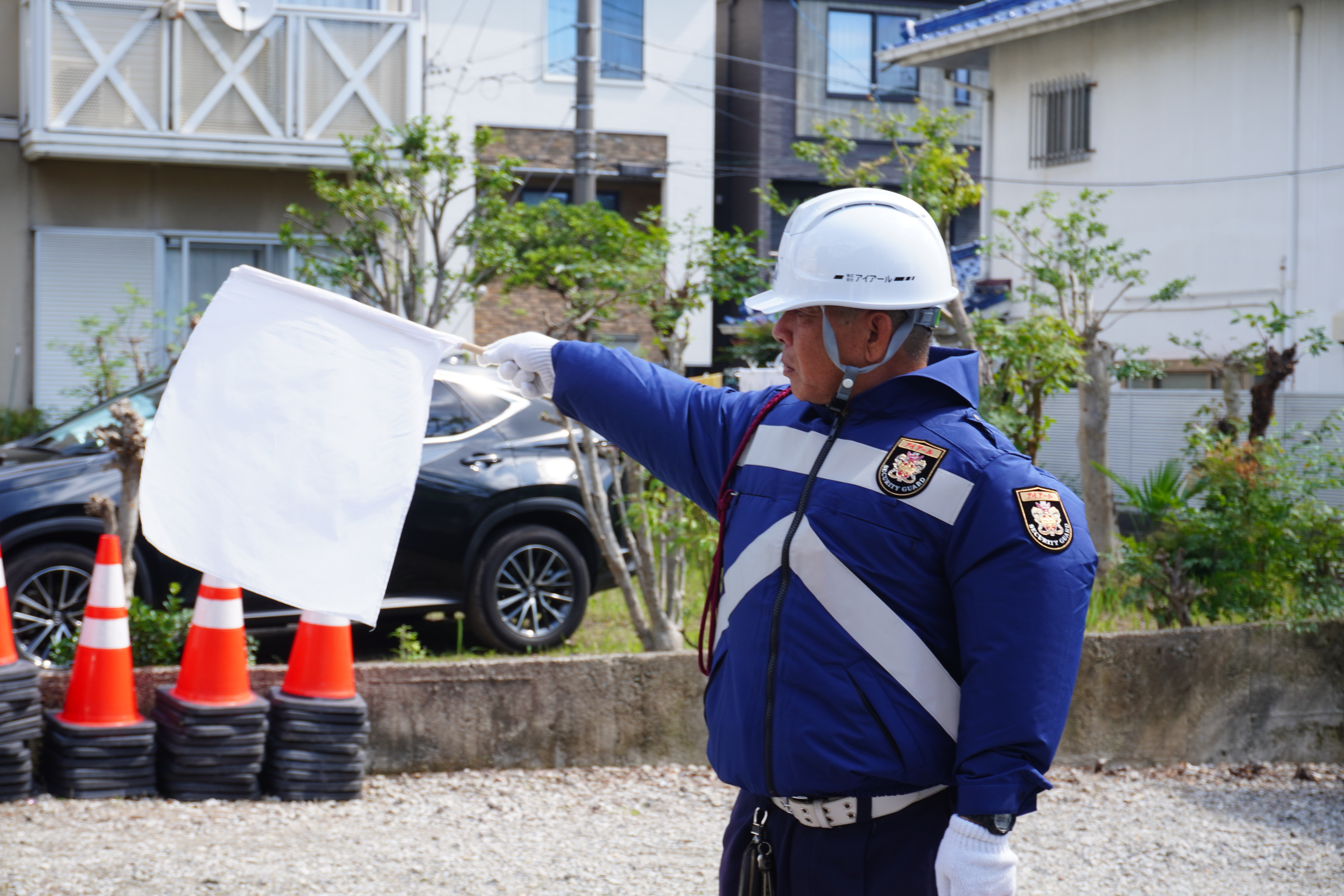 交通誘導警備業務とは大型の重機やトラックが建設現場へ円滑に出入り出来るように誘導したり建設現場付近を通行する車両が安全に通れるような交通誘導を行う警備業務になります。車両の誘導だけでなく歩行者の安全もしっかりと守る必要があります。その為、分かりやすさと正確性が求められます。弊社では誘導を行う際に「停止」「進行」などをドライバーや歩行者に分かりやすく伝えられるような技術を身に付けられるように定期的な講習会などを開催しています。質の良い警備をご提供出来るように取り組んでいます。
